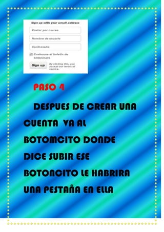To upload a presentation to SlideShare, you must first create a free account on the website. After signing up, you can click the "Upload" button to select the file you want to share. Finally, view your profile page to see the presentation listed among your uploads.