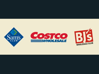 Sam's Club leads in the number of locations among warehouse retailers, followed by Costco and BJ's, with Costco generating the highest revenue. Club stores focus on stocking the top 20% best-selling products at discounted prices, creating a unique shopping experience. Packaging design for club stores should effectively communicate product information quickly and be visually appealing from multiple angles.