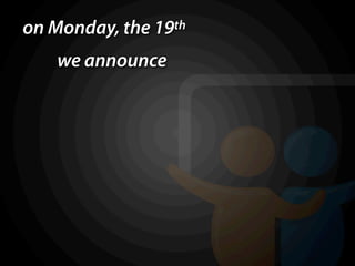 The document discusses an acquisition announcement scheduled for Monday the 19th. It teases a groundbreaking change to slide decks, inviting guesses about the nature of this innovation. The document encourages engagement by asking readers to leave their thoughts in the comments.