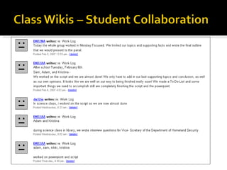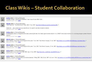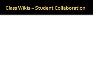 The document discusses various digital tools, including blogs, podcasts, and wikis, focusing on their educational applications and benefits for student engagement and collaboration. It highlights the importance of teaching digital literacy and responsible use of technology, while also emphasizing the potential risks associated with online content. Additionally, it provides resources and links to various platforms for educators and students to utilize these tools effectively in the classroom.