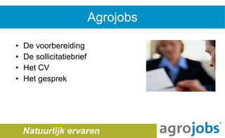 Het cv Algemeen:Houd je CV overzichtelijk en duidelijk Niet meer dan 2 pagina’s Laat er uit springen wat relevant is Gebruik een duidelijke indeling Natuurlijk ervaren Natuurlijk ervaren
