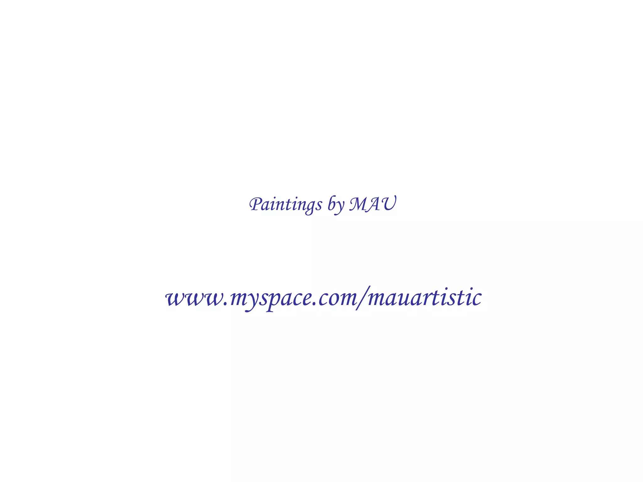 This document lists 7 paintings by the artist MAU, including their titles, dimensions, and medium. The paintings include "For the Grey buildings in our heart", "Bubble", "C.M.", "Adam&Eve", "Carnaval", "Methapora", and "Orphan", which range in size from 90x40cm to 120x70cm and are all oil paintings on canvas.