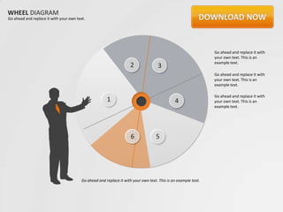The document is a wheel diagram template that contains instructions to replace the example text throughout with one's own text. The template includes diagrams of a wheel with numbered sections and quadrants, as well as instructions on how to customize the template by adding descriptions to various areas of the wheel diagram.