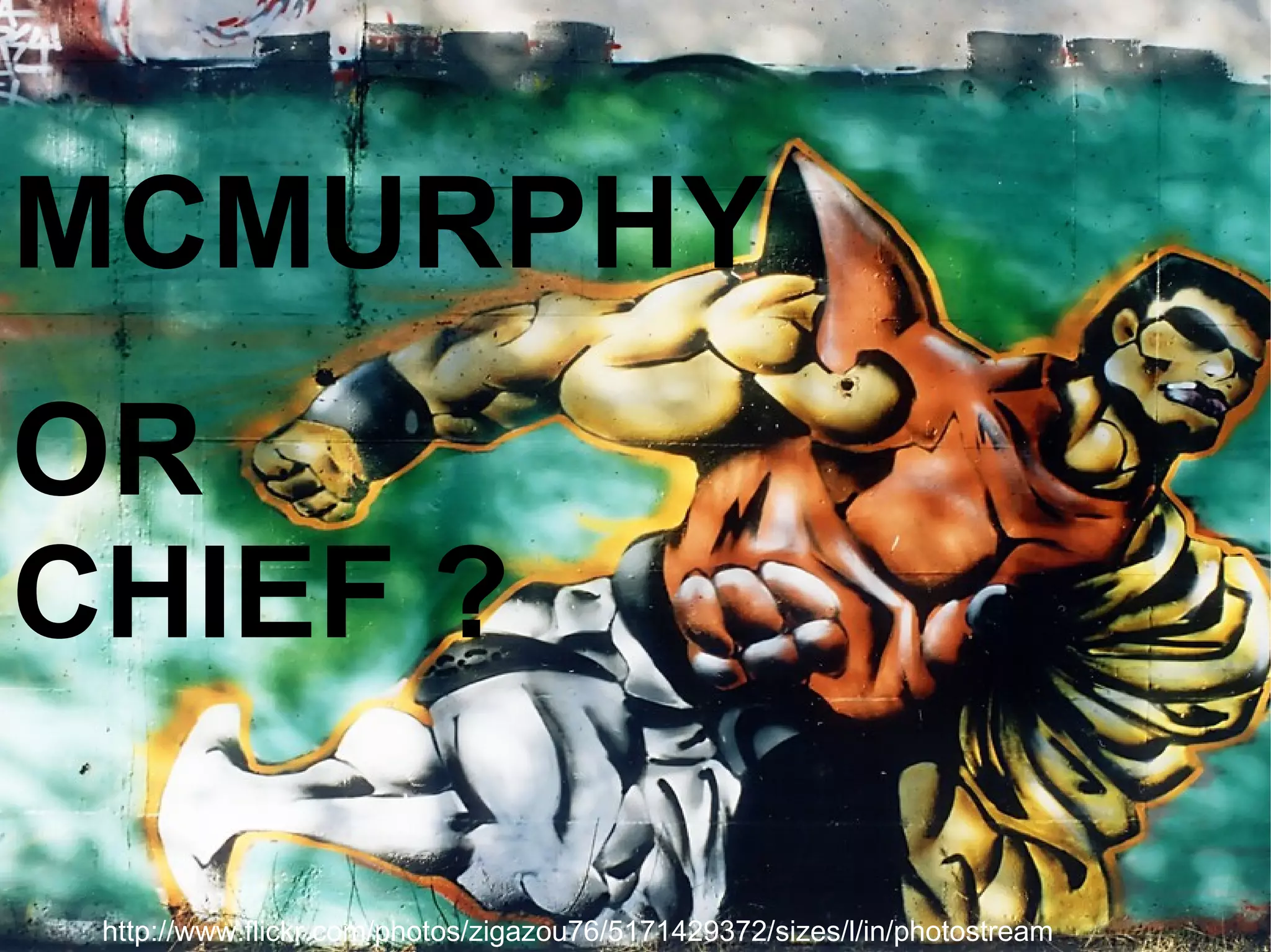 The document contains quotes from the novel One Flew Over the Cuckoo's Nest that show the dynamic between Randle McMurphy and the Chief. McMurphy encourages the Chief to stand up for himself and not be afraid, while the Chief sees McMurphy as an example of how to be strong and defiant against the authoritarian Nurse Ratched. In the end, McMurphy's rebellious spirit helps give the Chief confidence to leave the mental institution and assert his independence.