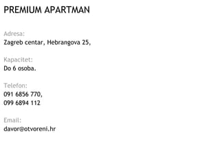 PREMIUM APARTMAN Adresa: Zagreb centar,