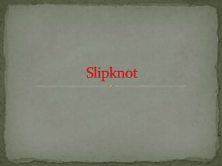 Slipknot is an American heavy metal band formed in 1995 that has 9 members who all wear masks and uniforms. Some of their songs have been nominated for Grammys and they have sold over 20 million albums worldwide. Their self-titled debut album was released in 1999 and they have since released several successful studio and live albums. The band's lineup has changed over time but currently consists of 9 members including Corey Taylor on vocals.