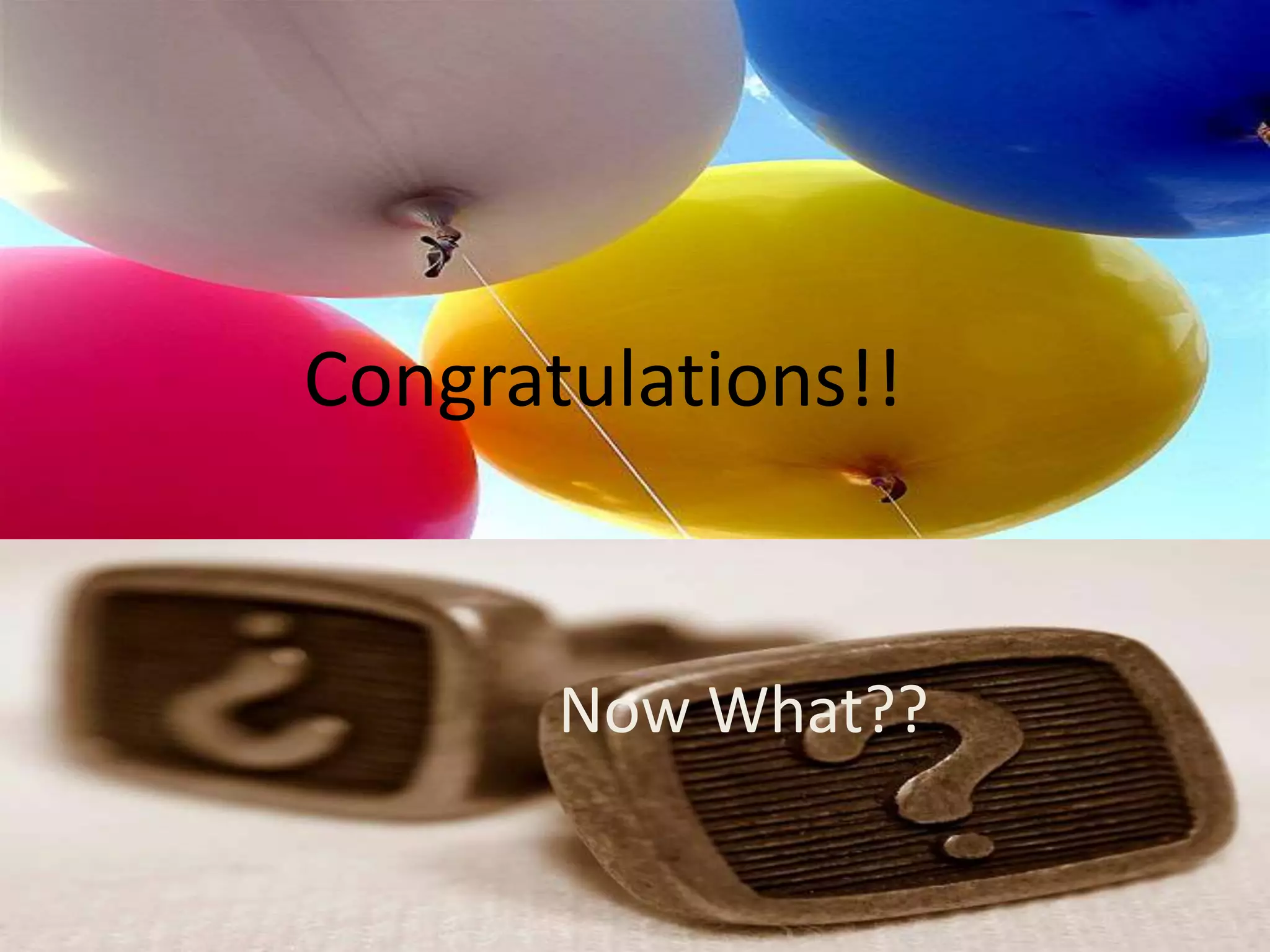 This document provides guidance for job seekers on finding a job after graduation. It outlines the steps to take, including reflecting on experiences, documenting accomplishments, preparing for interviews, and finding a mentor. Key parts of the process are preparation, interviews, offers, and securing a mentor. Photos are included to illustrate concepts like questions, directions, and job interviews.