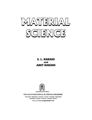 This document provides copyright information for a book on material science published by NewAge International (P) Ltd. It contains blank pages and a preface written by the authors Bhilwara S.L. Kakani and Amit Kakani in February 2004 thanking the publisher and welcoming suggestions to improve the book. The preface is followed by a table of contents outlining the chapters in the book.