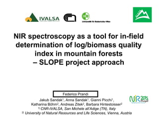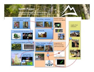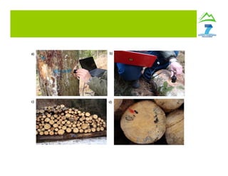 The document outlines a study on using NIR spectroscopy for assessing the quality of logs and biomass in mountainous forests. It emphasizes the need for an automated grading system to improve log segregation and enhance supply chain efficiency for forest products. The research aims to integrate various diagnostic techniques and data analysis for a more reliable evaluation of wood properties throughout the harvesting process.