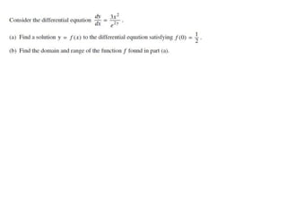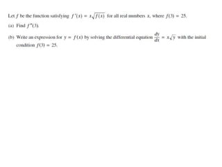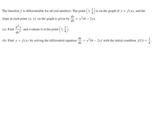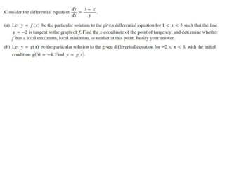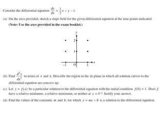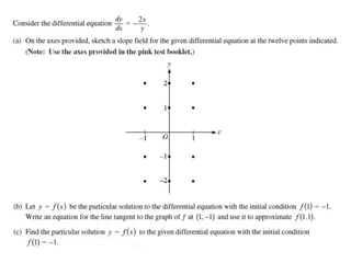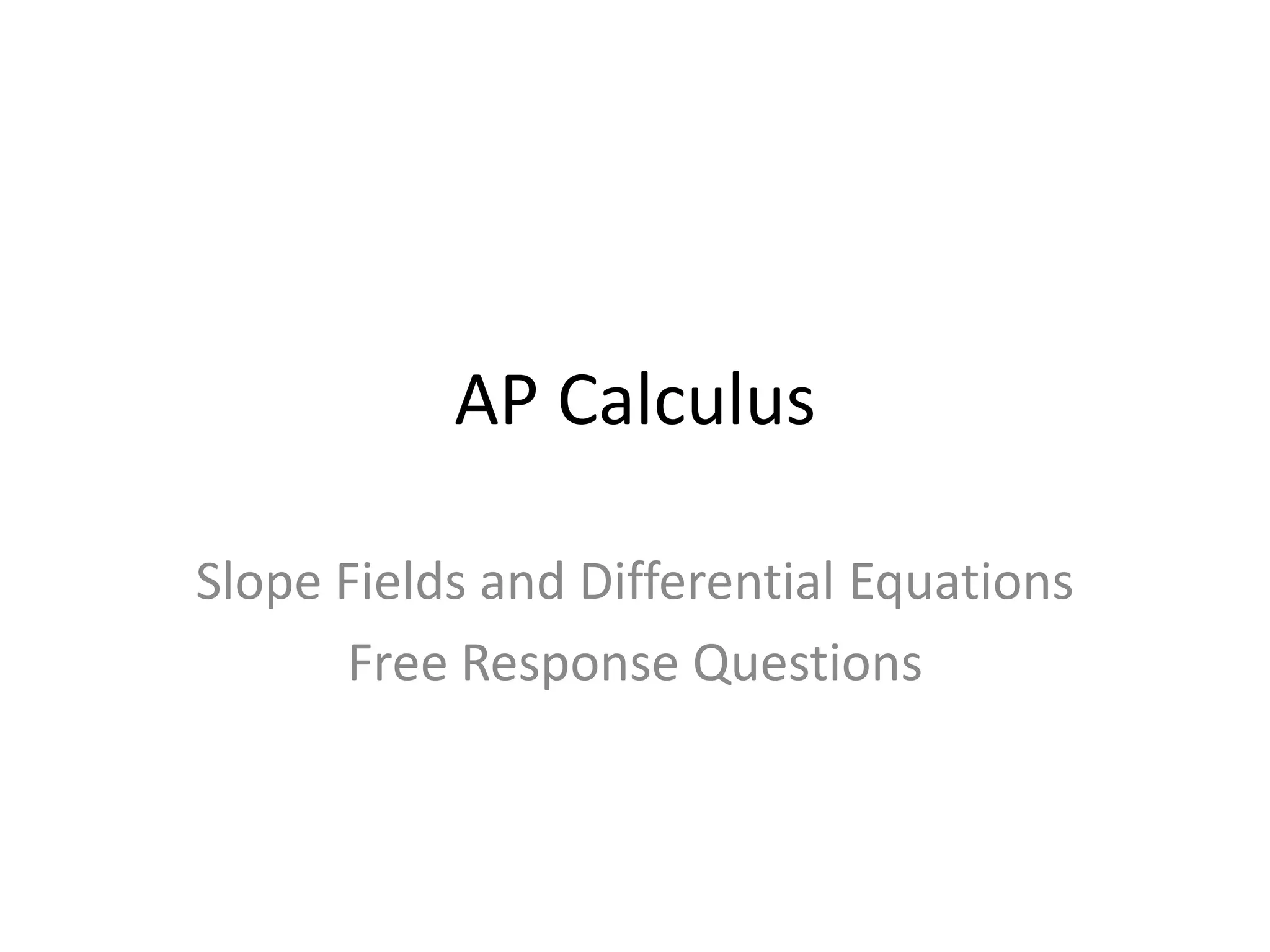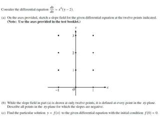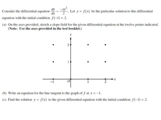 This document lists the years and forms of past AP Calculus exams that covered topics related to slope fields and differential equations on free response questions. Specifically, it lists exam questions from 2000 to 2007 for both AB Calculus exams Forms B and non-Form B that were relevant to slope fields and differential equations.