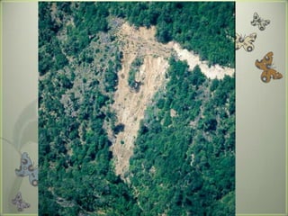 This document discusses slope processes and development. It defines key slope concepts like regolith, bedrock, and soil blankets. It describes three common slope shapes: convex, concave, and rectilinear. Factors that influence slope formation are also outlined, including climate, geology, regolith properties, and vegetation. Mechanisms of slope failure are then explained through concepts of shear strength, gravitational forces, angle of repose, and dynamic equilibrium.