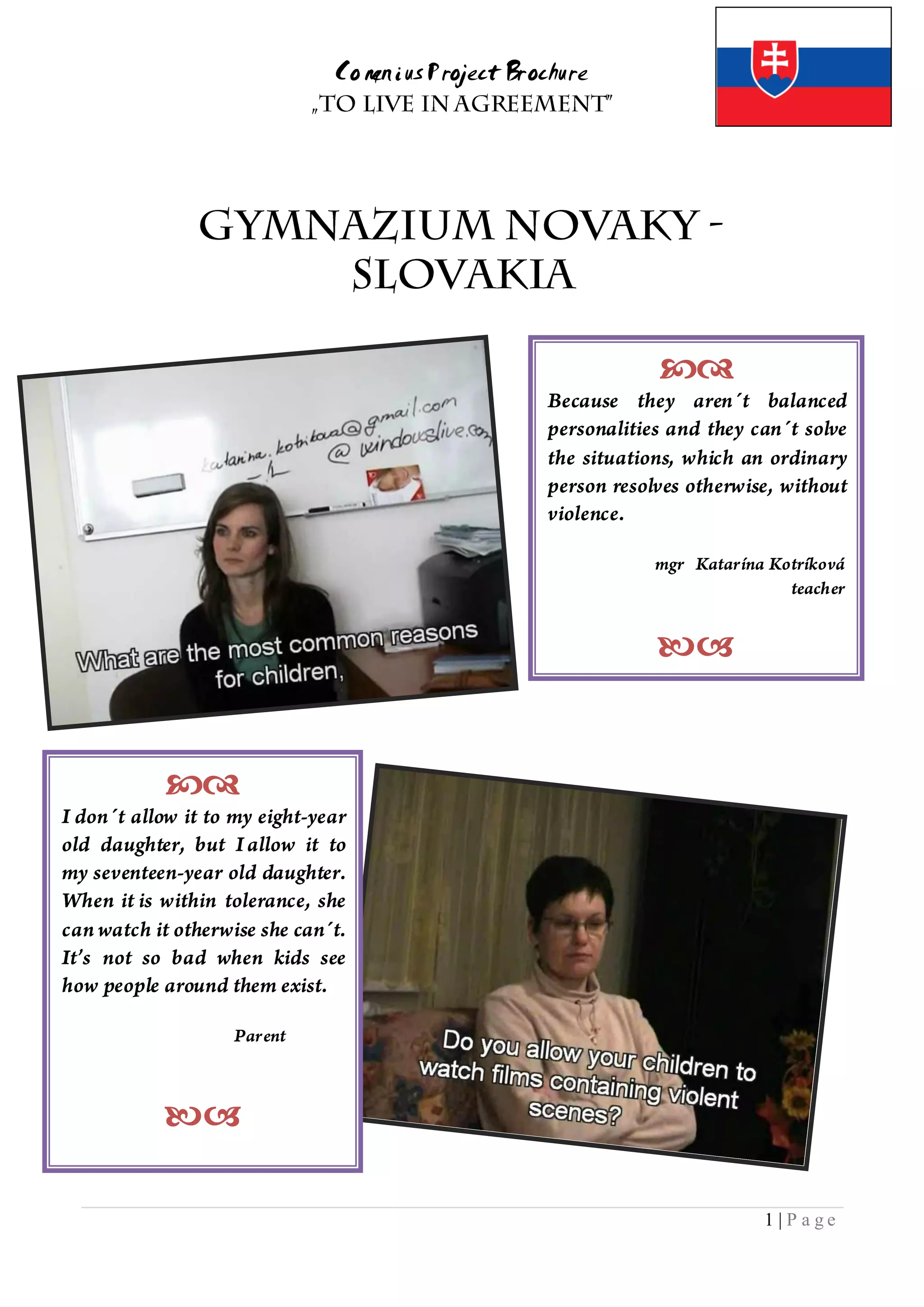 The document appears to be a brochure for a project called "Comius Project" that discusses quotes from notable figures about ending violence and promoting peace instead. The quotes emphasize that violence is unnecessary, costly and destroys what it intends to create, while peace is the only way forward. The main goal of the future according to one quote is to stop violence since the world is addicted to it.