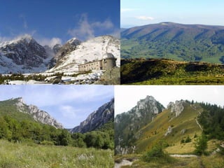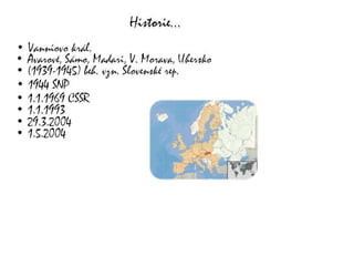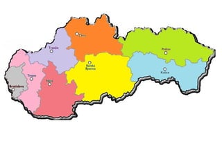 Národní parky naSlovensku: Vysoké Tatry, Nízké Tatry, Velká Fatra, Malá Fatra, Poloniny, Pieniny, Slovenský ráj, Slovenský kras, Muráňská planina Klimatické podmínky: • pravidelné střídání ročních období • malá vzdálenost od moře - výrazný vliv na počasí a klima • velké rozdíly v teplotě a vlhkosti vzduchu nejvyšší bod: Gerlachovský štít (2 655 m.n.m.)