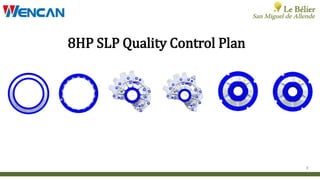 The document outlines a quality control plan for the 8hp SLP process, detailing responsibilities, key dates, and necessary inspections for defect detection. It includes implementation steps for establishing independent inspection areas and standardizing inspection processes to ensure high quality before shipment. Additionally, it mentions resource planning for personnel training and equipment required for effective execution of the plan.