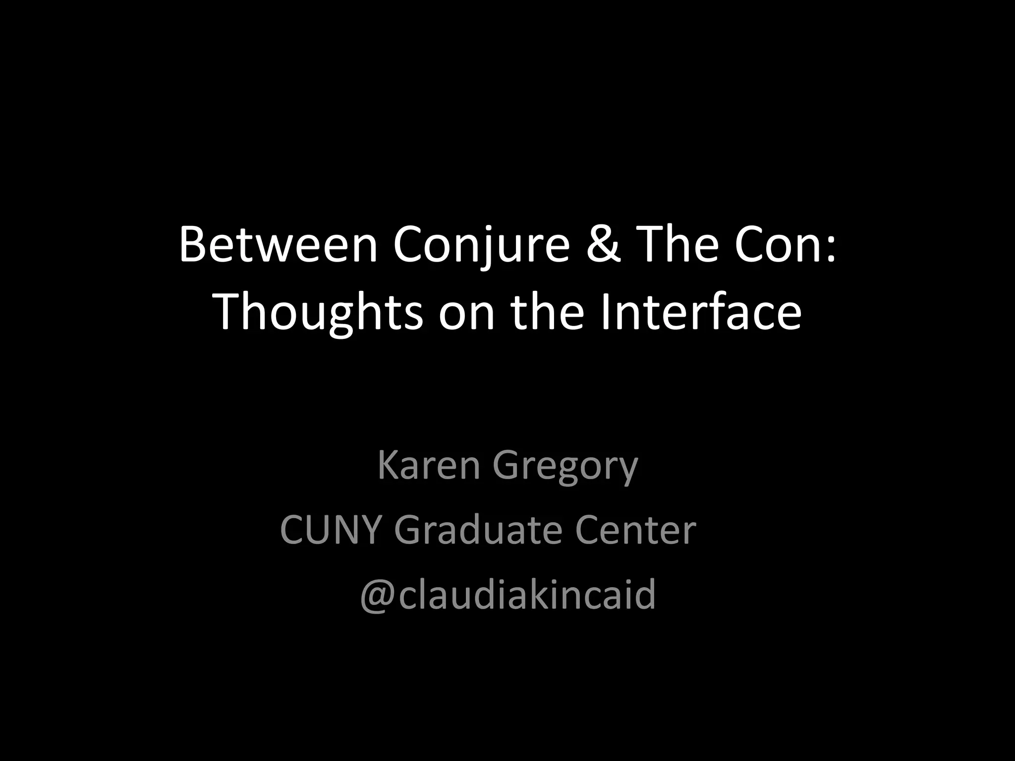 This document discusses the interface between magic and technology through references to Hermes Trismegistus' saying "As above, so below" and a video showing millisecond trading of Johnson & Johnson stock. It mentions the "Life of Things" reading archive and an archaic Greek herm of Hermes that unusually depicts the god's penis. The document examines the connections between conjuring, deception, and modern interfaces like high-frequency stock trading interfaces.