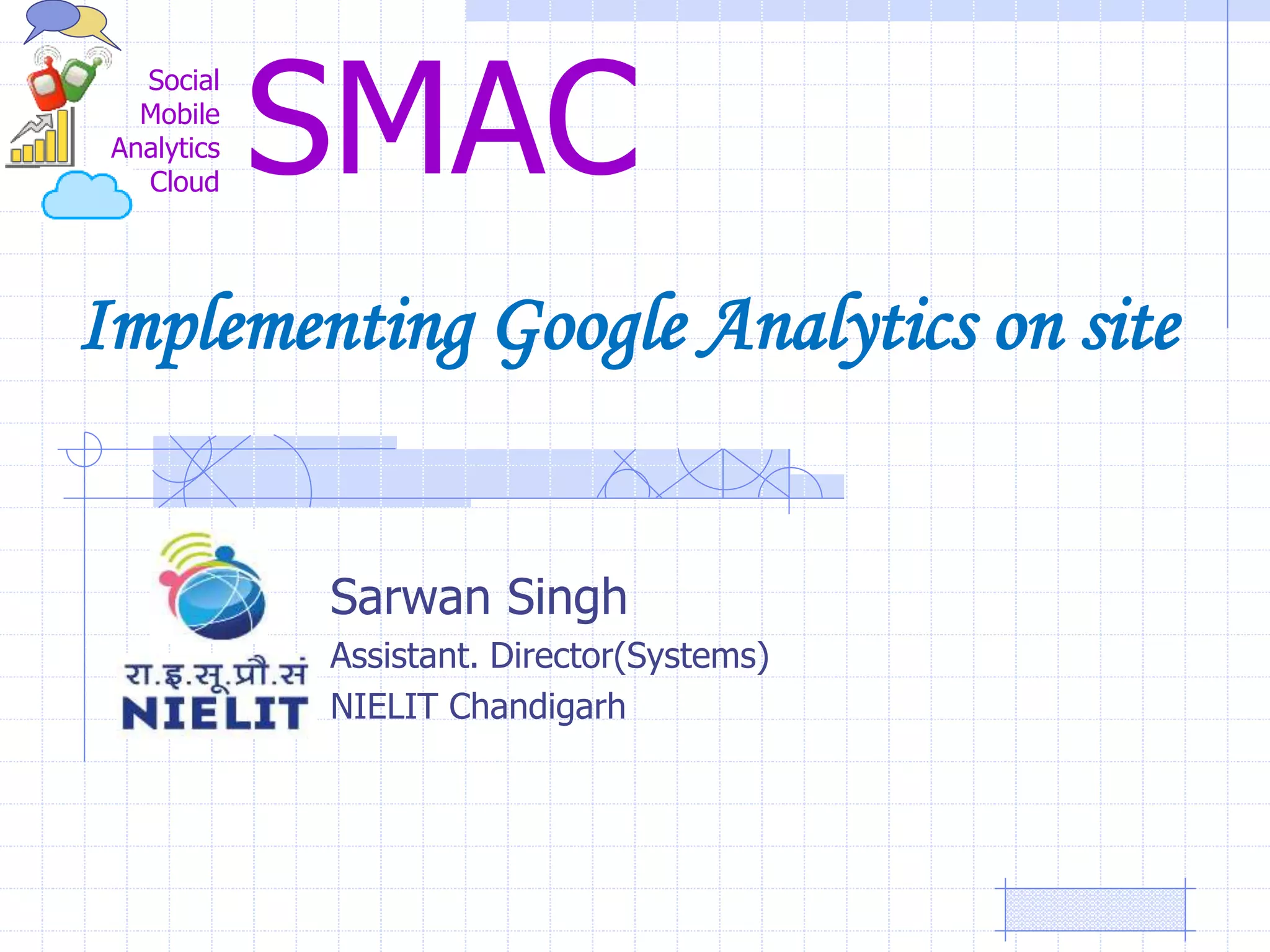 The document discusses implementing Google Analytics on websites to track user behavior and gather analytics data. It covers signing up for a Google Analytics account and enabling Analytics tracking on a user's website by adding the tracking code to pages. Steps include selecting the website in the Google Analytics interface and configuring tracking settings.