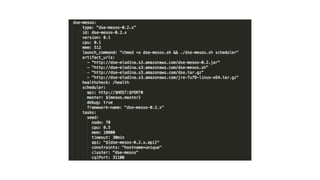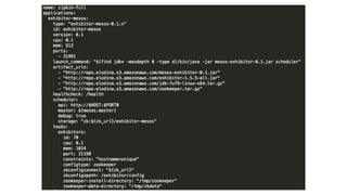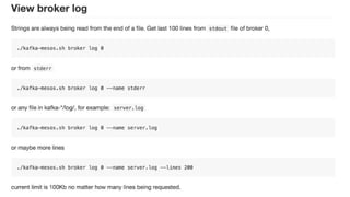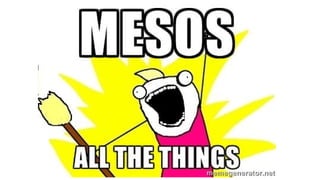 The document discusses the SMACK stack 1.1, which includes tools for streaming, Mesos, analytics, Cassandra, and Kafka. It describes how SMACK stack 1.1 adds capabilities for dynamic compute, microservices, orchestration, and microsegmentation. It also provides examples of running Storm on Mesos and using Apache Kafka for decoupling data pipelines.