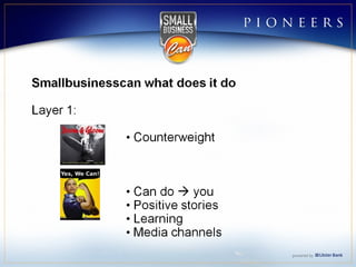 Ron Immink is the founder of Smallbusinesscan, which aims to help small businesses grow beyond their competence through decision grids, articles, tools, and insights in an open source Wikipedia-style platform. Smallbusinesscan also allows entrepreneurs to ask questions, get feedback, and connect with over 6,000 other business people. Immink is seeking feedback on how to improve Smallbusinesscan and its initiatives to grow the movement through events, media partnerships, and storytelling. He has learned that problems, solutions, ideas generation, trend watching, sales, passion and storytelling are important for strategy.