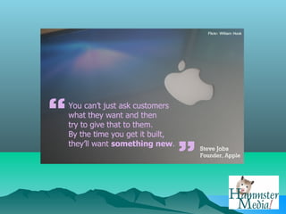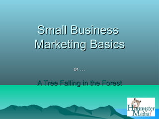 This document provides an overview of small business marketing basics. It discusses the importance of marketing to attract and retain customers and introduces various marketing techniques. These include defining your brand, understanding your target audience, developing marketing strategies across different channels like websites, social media, email, advertising, and community involvement. The document emphasizes integrating marketing messages across all platforms and that effective marketing is an ongoing process.