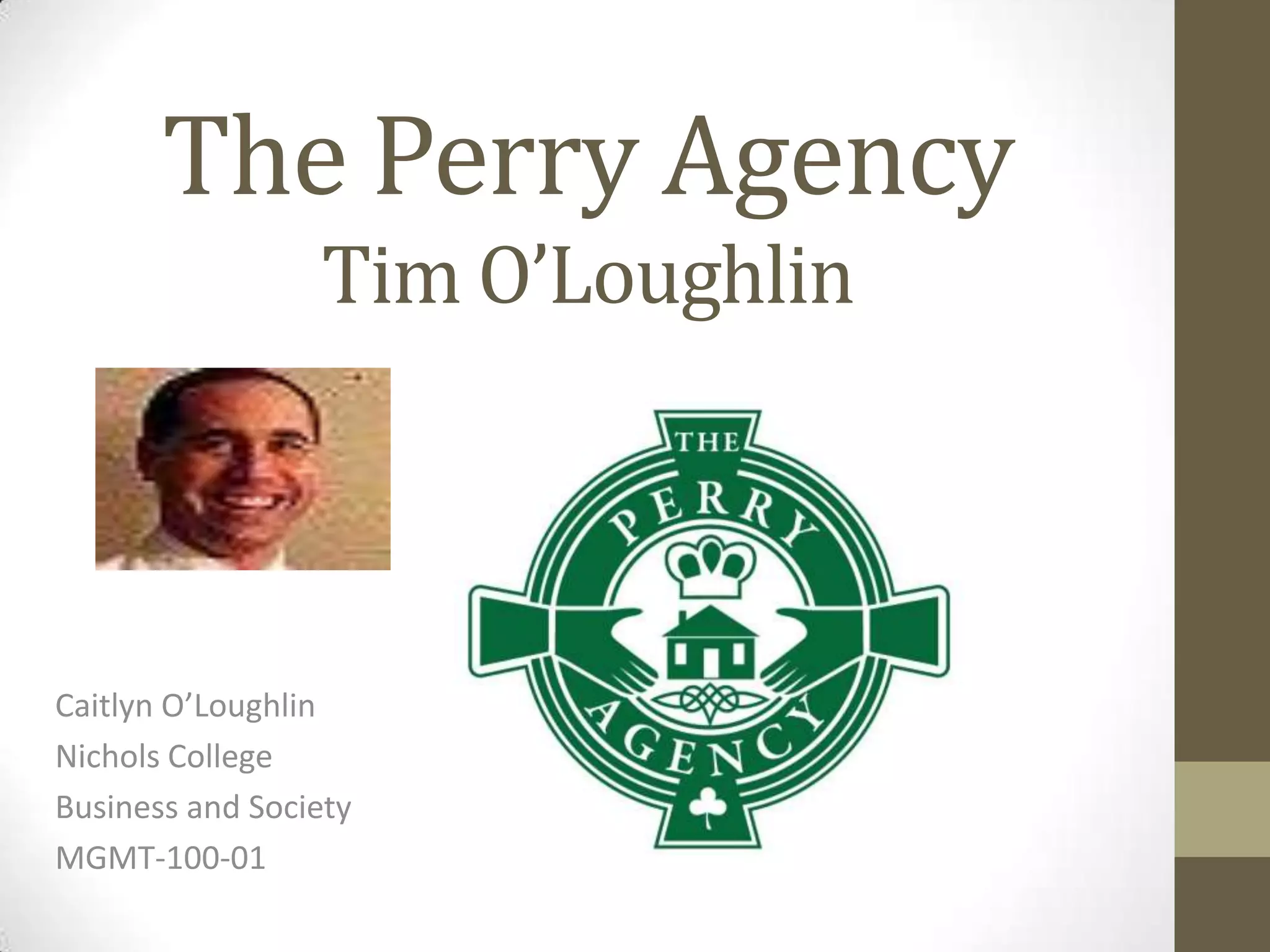 The Perry Agency is a sole proprietorship real estate agency owned and operated by Tim O'Loughlin for the past 10 years. It focuses on residential and commercial real estate sales. Tim started the business after leaving corporate employment to have more time for his family. While the business provides Tim with a better quality of life, the challenges of keeping up with larger competitors while controlling costs. Tim plans to merge the business with a national corporation in the near future.