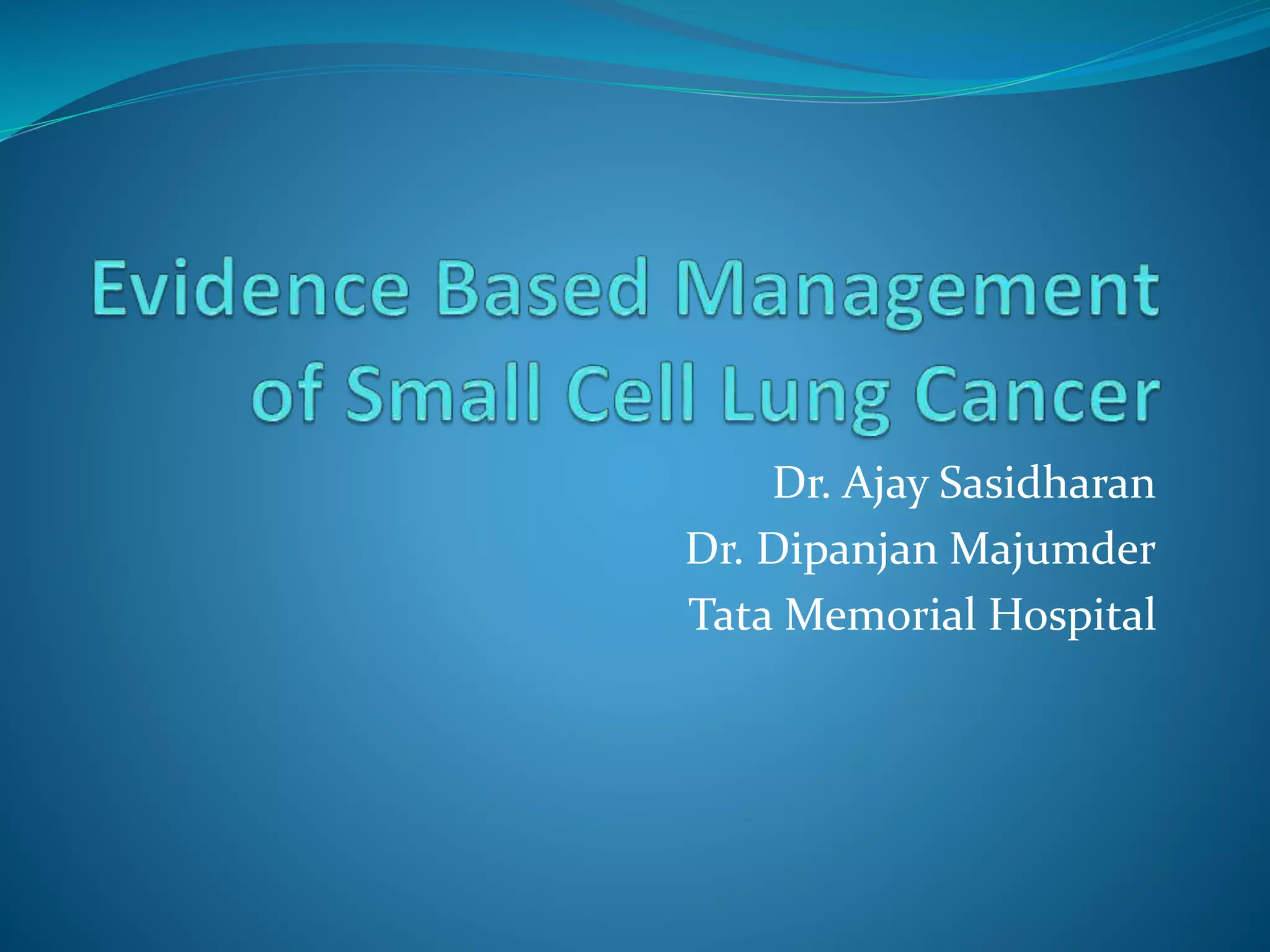 This document summarizes information about small cell lung cancer (SCLC), including its incidence, risk factors, staging, prognosis, diagnostic workup, and treatment approaches. Some key points: