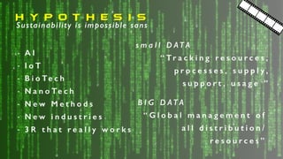Peter Cochrane argues that simple thinking and sustainability cannot coexist without a comprehensive approach to resource management and innovation. He emphasizes the need for new materials, energy-efficient processes, and the integration of big and small data in various industries to create sustainable solutions. The document highlights the complexities of managing resources in a technologically advanced world and warns against the potential environmental degradation caused by current IoT implementations.
