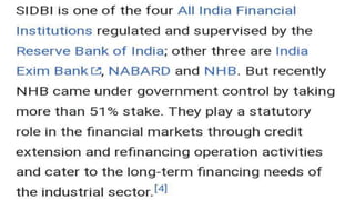 This document is from Nadar Saraswathi College of Arts and Science in Theni and was presented by S. Vijayalakshmi, a student pursuing her II MSc in IT. It discusses projects undertaken with the Small Industries Development Bank of India.