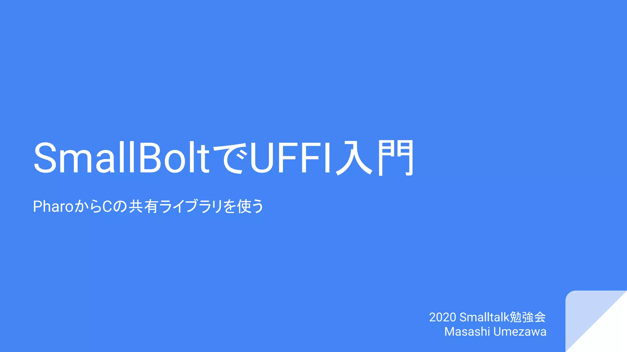 SmallBoltでUFFI入門 PharoからCの共有ライブラリを使う 2020 Smalltalk勉強会 Masashi Umezawa