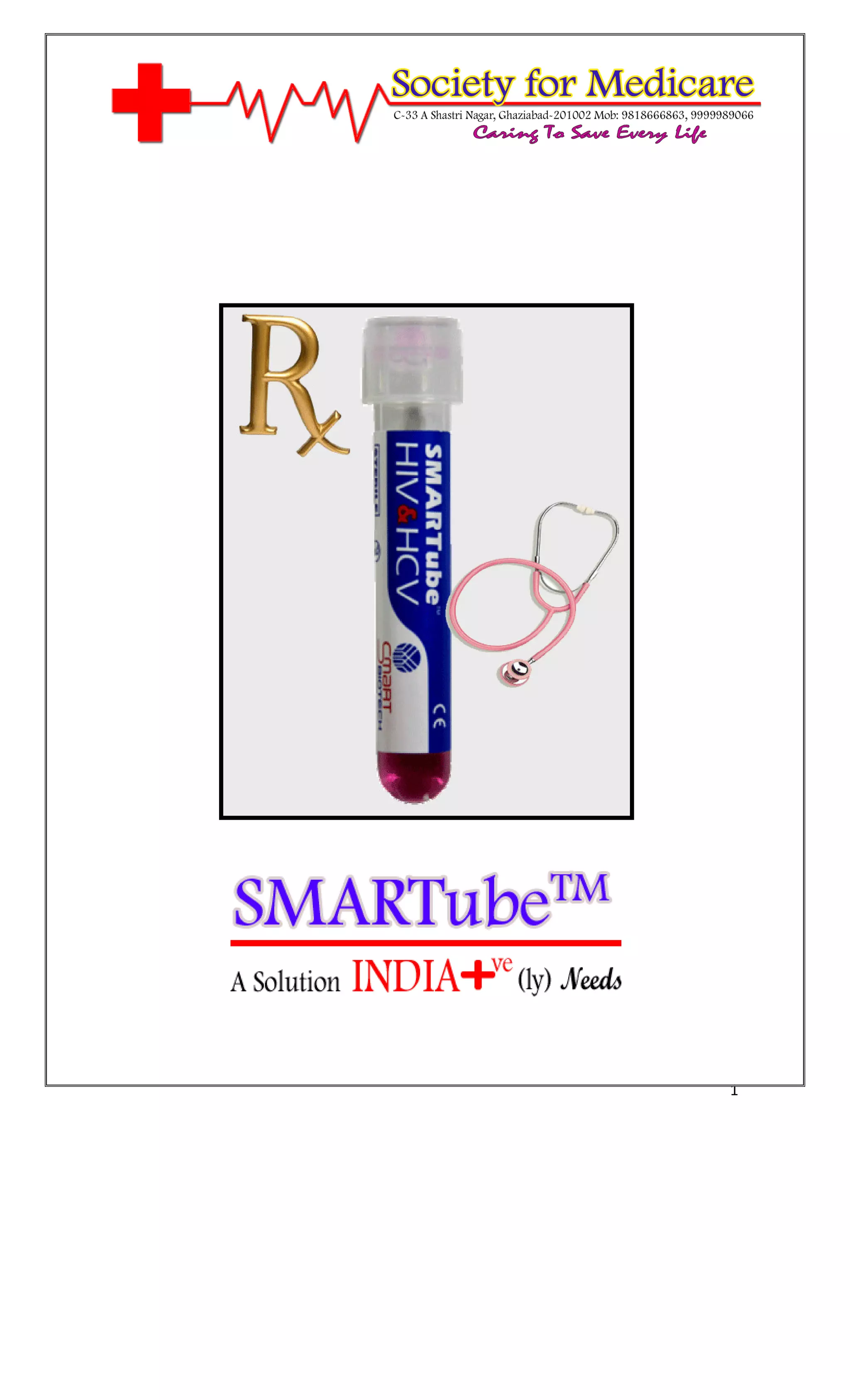 SMARTube is a new medical technology for early detection of HIV and HCV infections. It works by stimulating the body's immune response in a small blood sample to produce antibodies within days, rather than waiting weeks or months. This allows detection of infections during the "window period" before other tests can detect it. SMARTube has been tested on over 10,000 patients and is in use in several countries. It provides a simple, affordable way to more accurately diagnose infections and help reduce the spread of HIV/HCV.