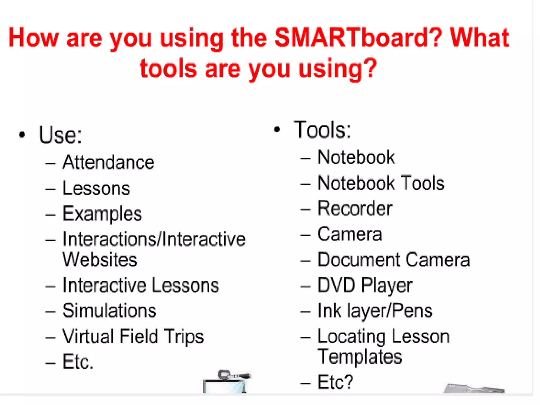 3. Tips are provided for eight ways to utilize SMARTBoards in the classroom, such as displaying websites, playing games, and creating digital graphic organizers.