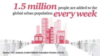 The document discusses smart cities in India. It begins by defining what a smart city is, noting that smart cities aim to integrate technology and sustainability to improve efficiency. It then discusses why smart cities are needed, as 60% of the world's population is expected to live in cities by 2030, placing strain on resources. Key features of smart cities include innovations using internet of things for more efficient water and energy systems and improved public safety. The document also discusses India's smart cities mission to develop 100 smart cities and improve quality of life through technology and sustainability. It provides examples of priority areas for Bhubaneswar and Nashik and concludes by noting the potential for smart cities to reduce inequality in India.