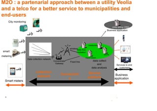 Orange provides connectivity, infrastructure, and services to support smart cities. Key smart city goals include optimizing resource use, improving mobility, and offering new services to citizens, businesses, and tourists. Drivers for smart city development include resource and transportation challenges from urbanization, changing consumer behaviors, and new ICT technologies like M2M, sensors, and high-capacity networks. Orange contributes its experience in telecom networks, IT platforms, data centers, and dedicated strategic programs to help cities achieve their smart city visions.
