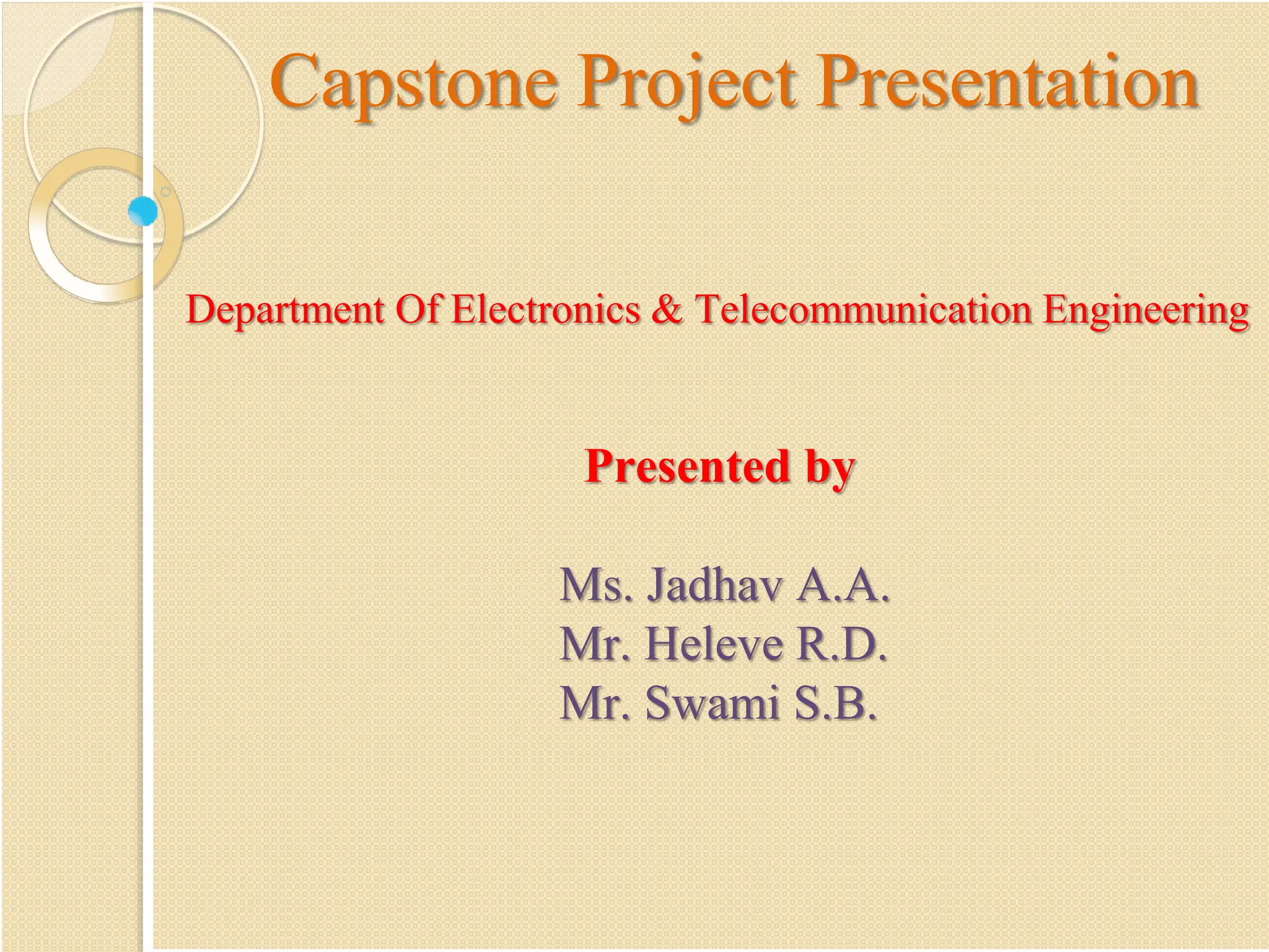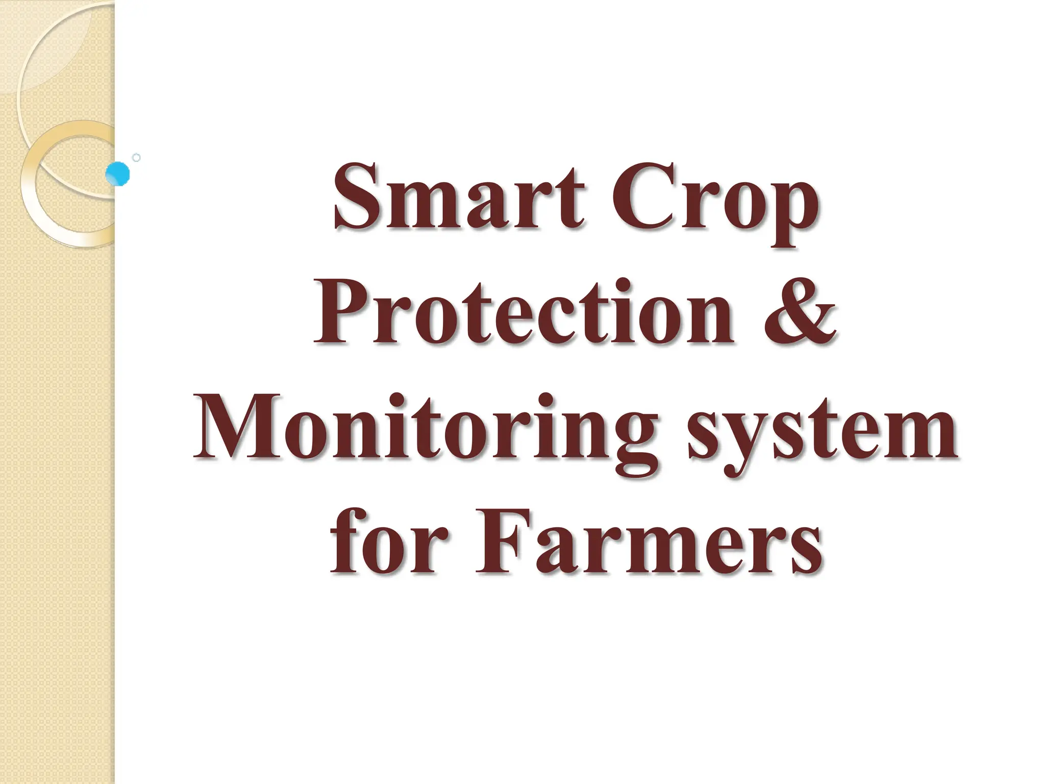 The document presents a capstone project on a Smart Crop Protection and Monitoring System aimed at preventing wild animals from damaging crops, thereby reducing losses for farmers. The system utilizes various hardware and software components, including sensors and IoT technology, to automate crop monitoring and irrigation based on environmental conditions. Advantages include improved productivity and reduced labor, while disadvantages involve potential damage from severe weather and maintenance challenges.