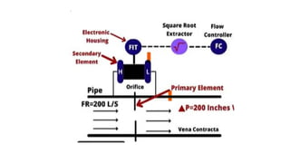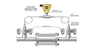 The document discusses the design and functioning of differential pressure transmitters, which utilize a taut metal diaphragm to measure pressure differences through differential capacitance. It highlights the importance of built-in square root extraction for accurately relating flow rates to differential pressures, simplifying system design and ensuring real-time monitoring. Additionally, it outlines advantages such as smart transmitters with remote calibration and digital communication capabilities.