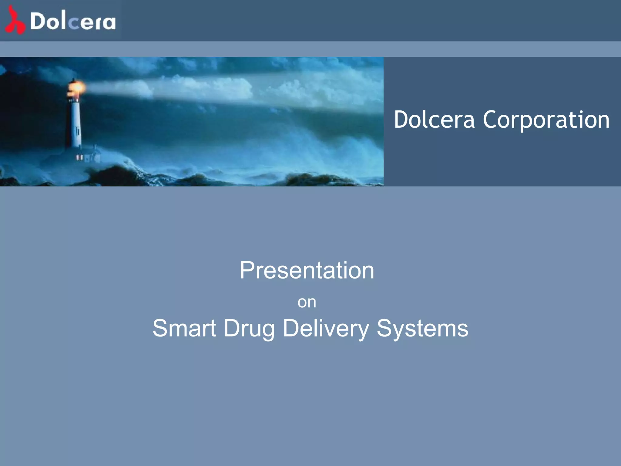 The Dolcera Corporation presentation discusses smart drug delivery systems that utilize MEMS and NEMS technologies for precise drug administration based on biological sensor feedback. It highlights various devices such as micro-pumps and microneedles that improve therapeutic efficacy and patient quality of life. Additionally, the document outlines search strategies and relevant patents in the field of drug delivery systems.