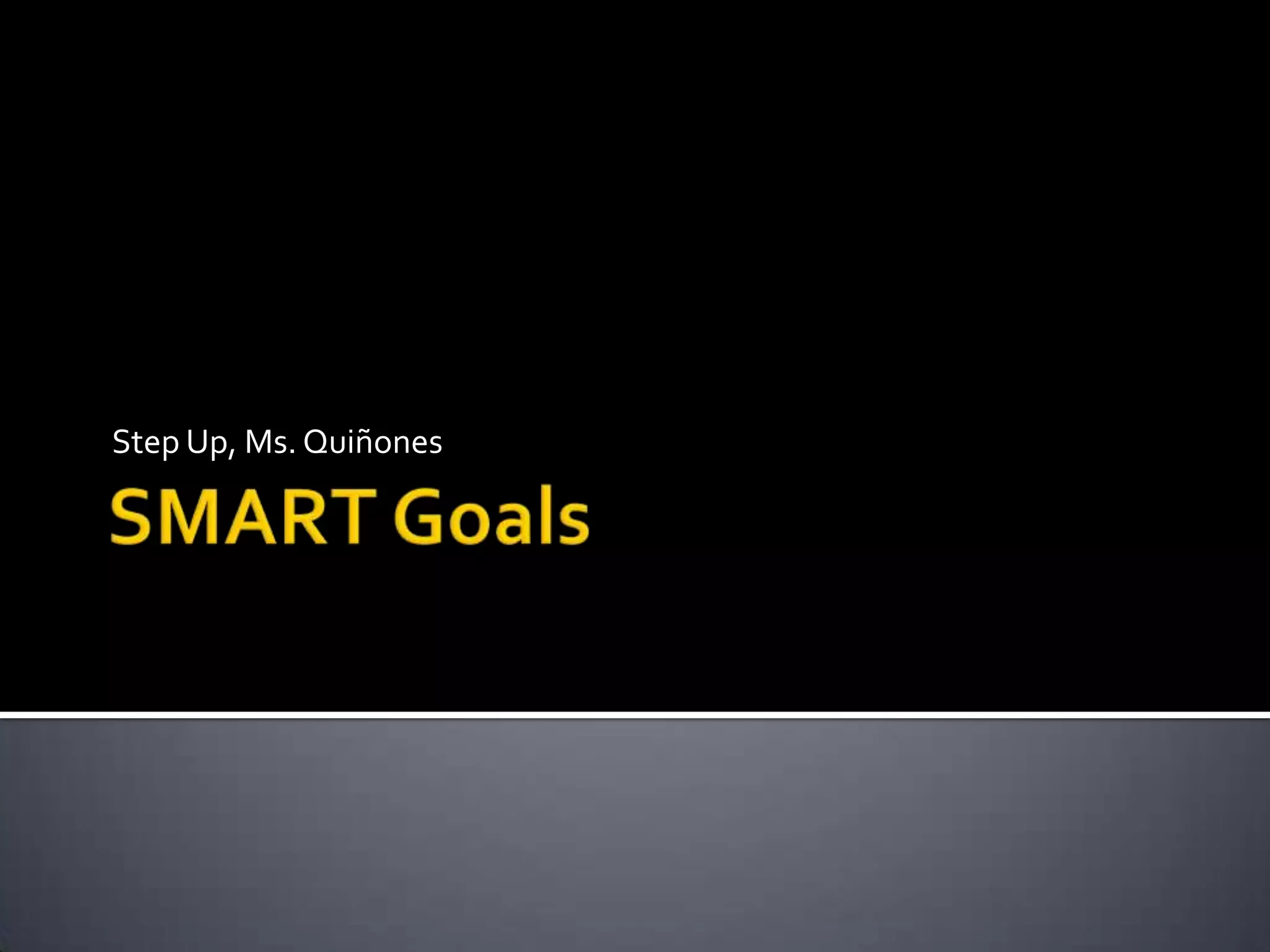 This document outlines the SMART criteria for setting effective goals: specific, measurable, attainable, realistic, and time-bound. It provides examples of weak goals and revised goals that meet each criterion. Specific goals clearly define the who, what, where, when, which, and why. Measurable goals establish criteria for tracking progress. Attainable goals are within one's abilities. Realistic goals are commitments one is willing and able to work towards. Time-bound goals have clear deadlines. Following the SMART guidelines helps create goals that motivate and guide progress.