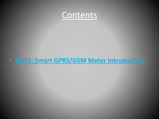 This document provides an overview and specifications for a single phase smart GPRS/GSM meter. It includes the following key points: