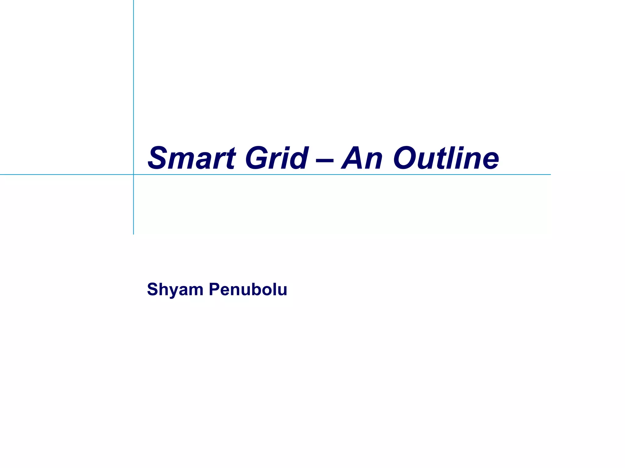 The document outlines the concept of smart grids, highlighting their components, benefits, and key players involved in the transition from traditional electricity grids. It illustrates the shortcomings of current grids, such as reliability and inefficiency, and emphasizes the advantages brought by smart technologies like real-time monitoring, energy management, and integration of renewable sources. The document also discusses various companies and initiatives that are leading the development and implementation of smart grid technologies.