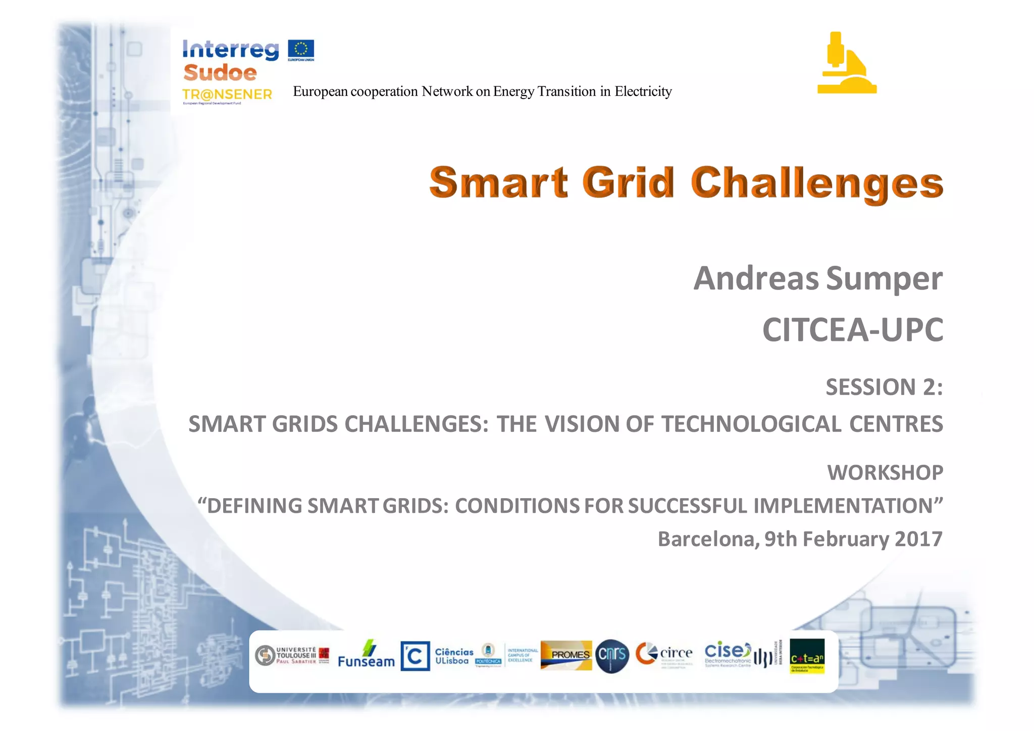 This document summarizes a presentation on smart grids given at a workshop in Barcelona, Spain in 2017. It discusses how the electricity system may look different in 20 years due to digitalization, with smart connected products changing competition. It also notes the potential for prosumers, or consumer-producers, to have significant market power if they collectively participate in energy markets. Finally, it discusses the case for transitioning to smart grids but also reasons why change may not fully materialize, such as certain large infrastructure investments undermining alternatives or business cases being too dependent on local conditions.