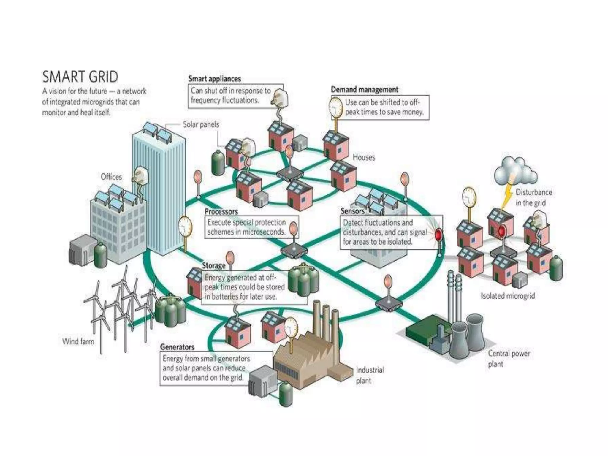 - Key features of smart grids include distributed power generation, self-monitoring, adaptive micro-grids, and giving consumers control over their energy usage.