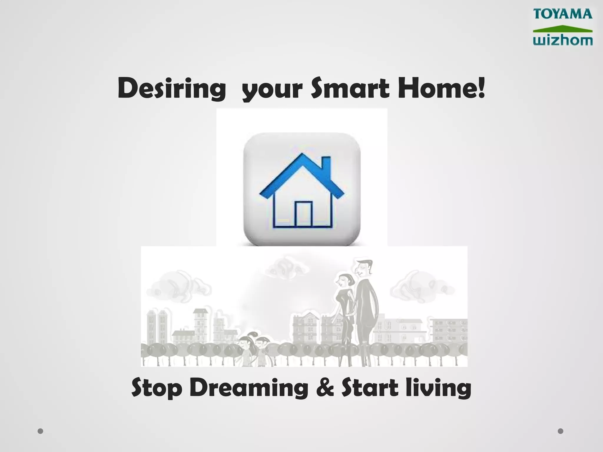 The document describes wireless smart home solutions from Toyama in partnership with HCL. It summarizes the key features of Toyama's smart home system which is centered around the Toyama Home Gateway (TGate) controller. The system allows users to control smart home devices like lights, fans, AC and curtains using various interfaces anywhere. It also provides safety, security and home automation features like video surveillance, intruder detection and automated lighting. The summary highlights the primary devices involved - the TGate controller, tablet interface and wireless lighting controls and digital door locks.
