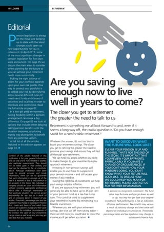 2) The need to check pension contracts have been updated to reflect the new legislation to take advantage of the changes.