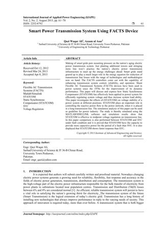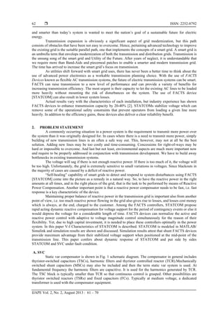 This paper discusses the application of static synchronous compensators (STATCOM) as flexible AC transmission systems (FACTS) devices to enhance voltage stability and increase the capacity of power transmission systems. The study employs MATLAB/Simulink simulations to compare the performance of STATCOM and static var compensators (SVC) under various conditions, demonstrating that STATCOMs provide faster response and better reactive power support, particularly during fault scenarios. Ultimately, the findings suggest that implementing STATCOM technology can significantly improve efficiency and reliability in modern smart power transmission systems.