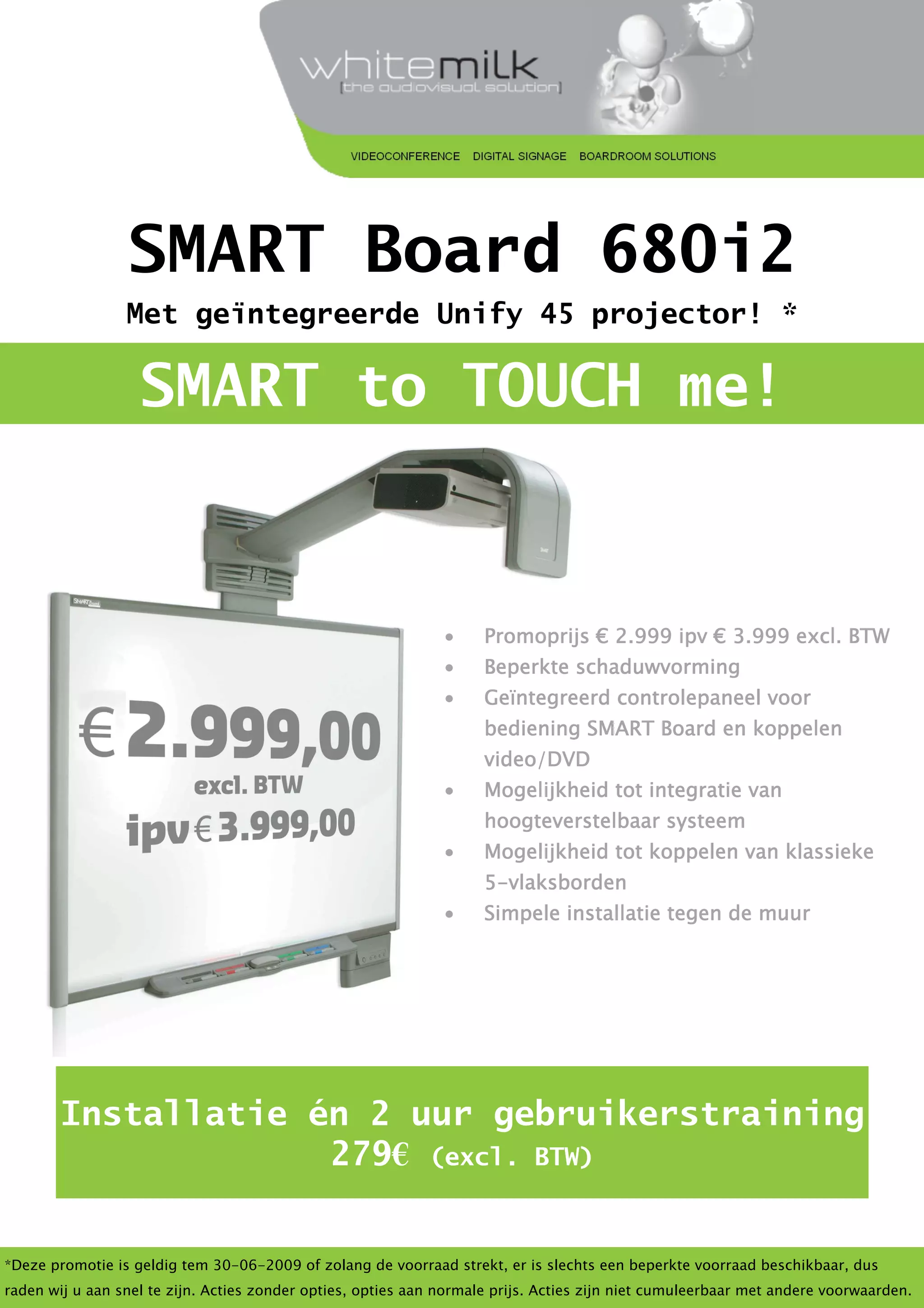Smart to touch! - actie voor een interactive whiteboard met geïntegreerde projector van Smart Technologies