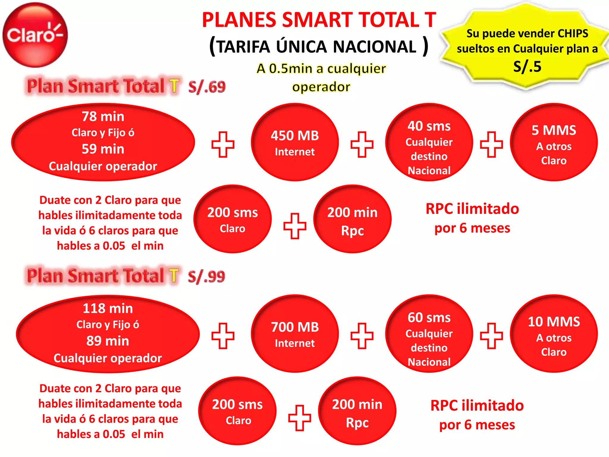 Este documento presenta varios planes de telefonía móvil de la compañía Claro. Incluye planes con minutos y mensajes ilimitados, así como datos móviles. Los clientes pueden comprar solo el chip o llevar su propio equipo. Para obtener el plan, los clientes deben completar un formulario con su información personal y enviarlo por correo electrónico, luego Claro los llamará para confirmar el pedido y enviar un código para canjear el plan en cualquier tienda Claro.