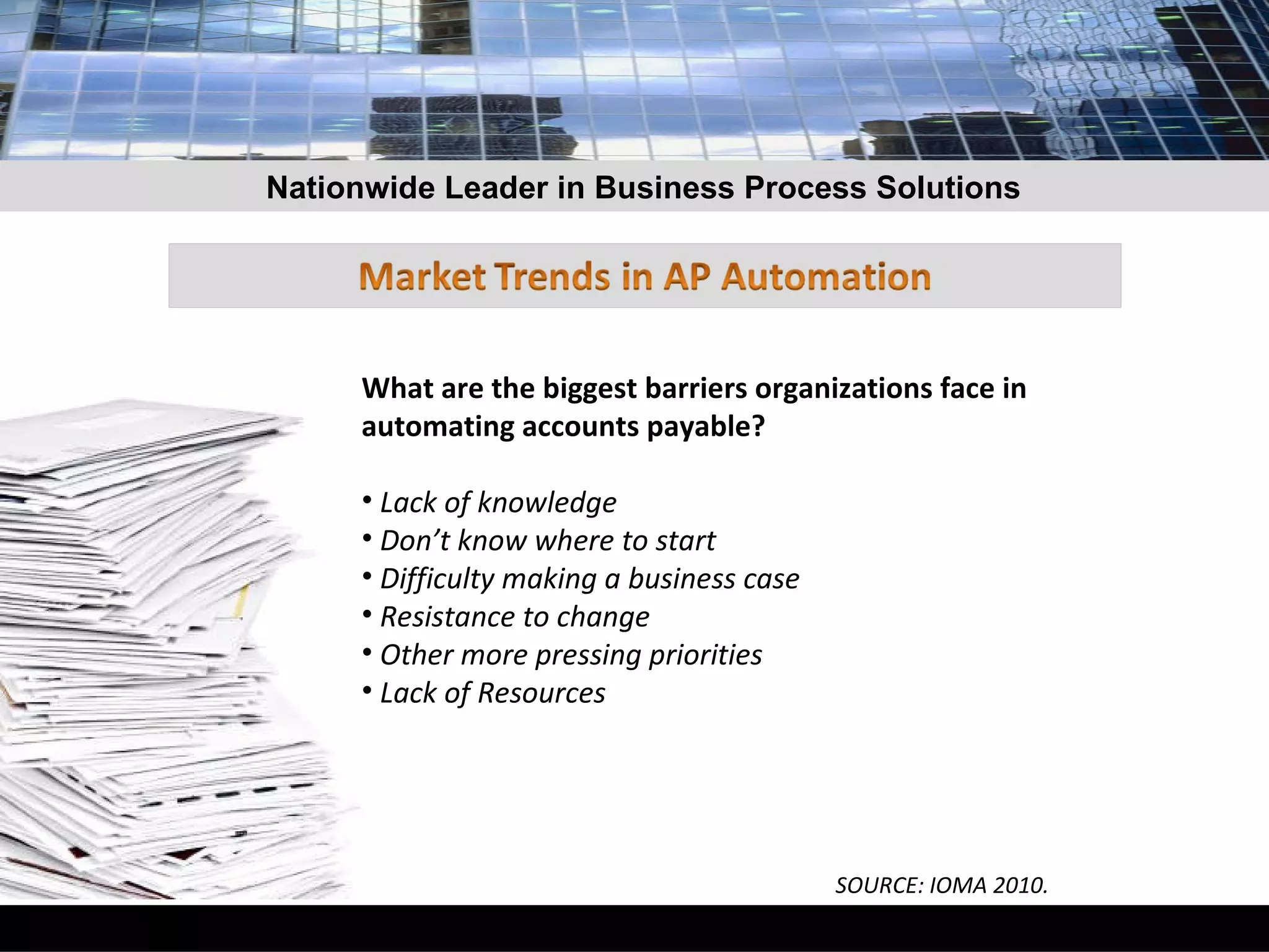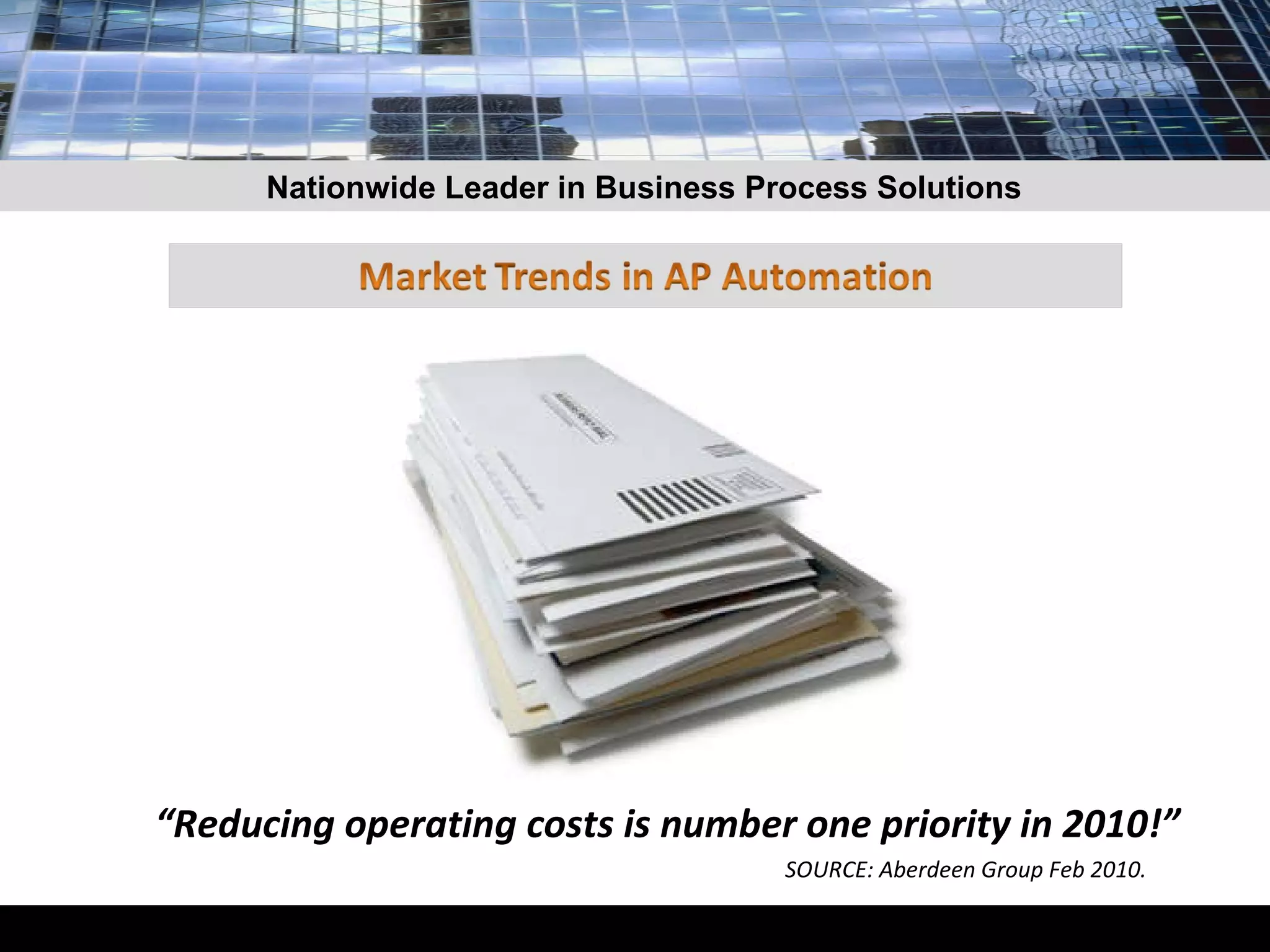 The document discusses the benefits of automating accounts payable processes. Reducing operating costs is the top priority for many companies in 2010. Automating AP can help reduce costs by eliminating paper invoices, reducing data entry errors, improving cash flow through timely payments, and freeing up staff time. It also improves visibility and controls over the invoice processing.