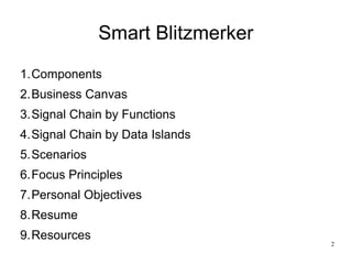 The document outlines the concept of 'Smart Blitzmerker', a frugal metering solution utilizing various smart technologies for improved energy monitoring. It details components, value propositions, signal chains, and potential applications, emphasizing collaboration among local colleges, developers, and government entities. The project aims for efficient data management with minimal investment, focusing on accessibility in underdeveloped regions.