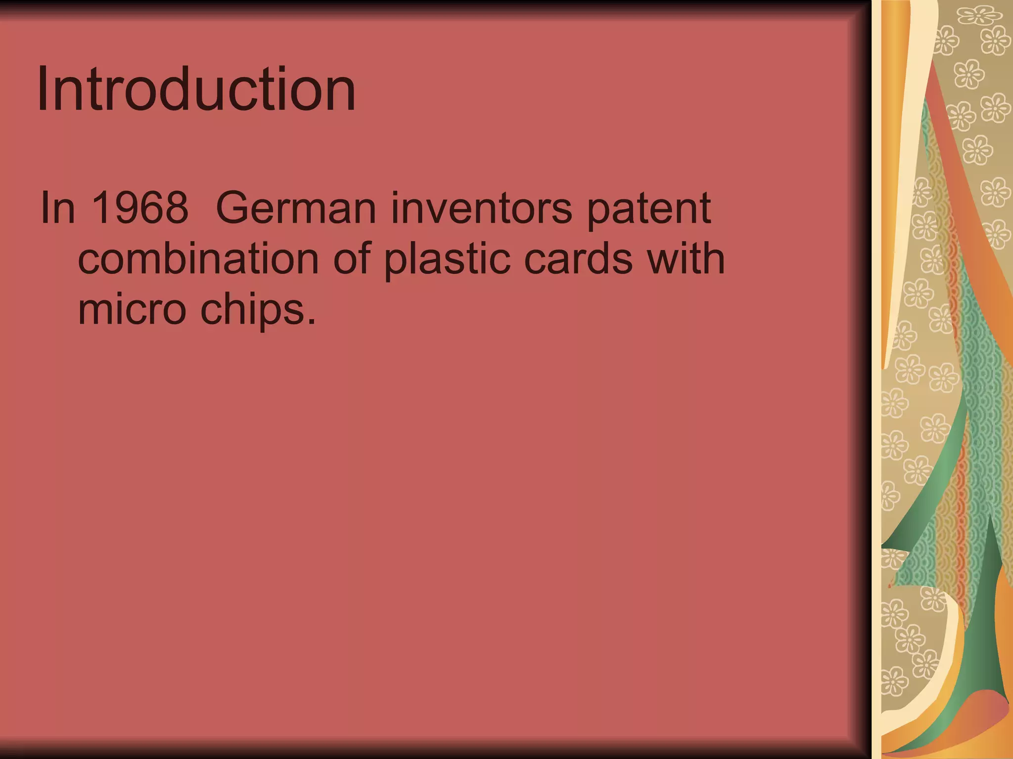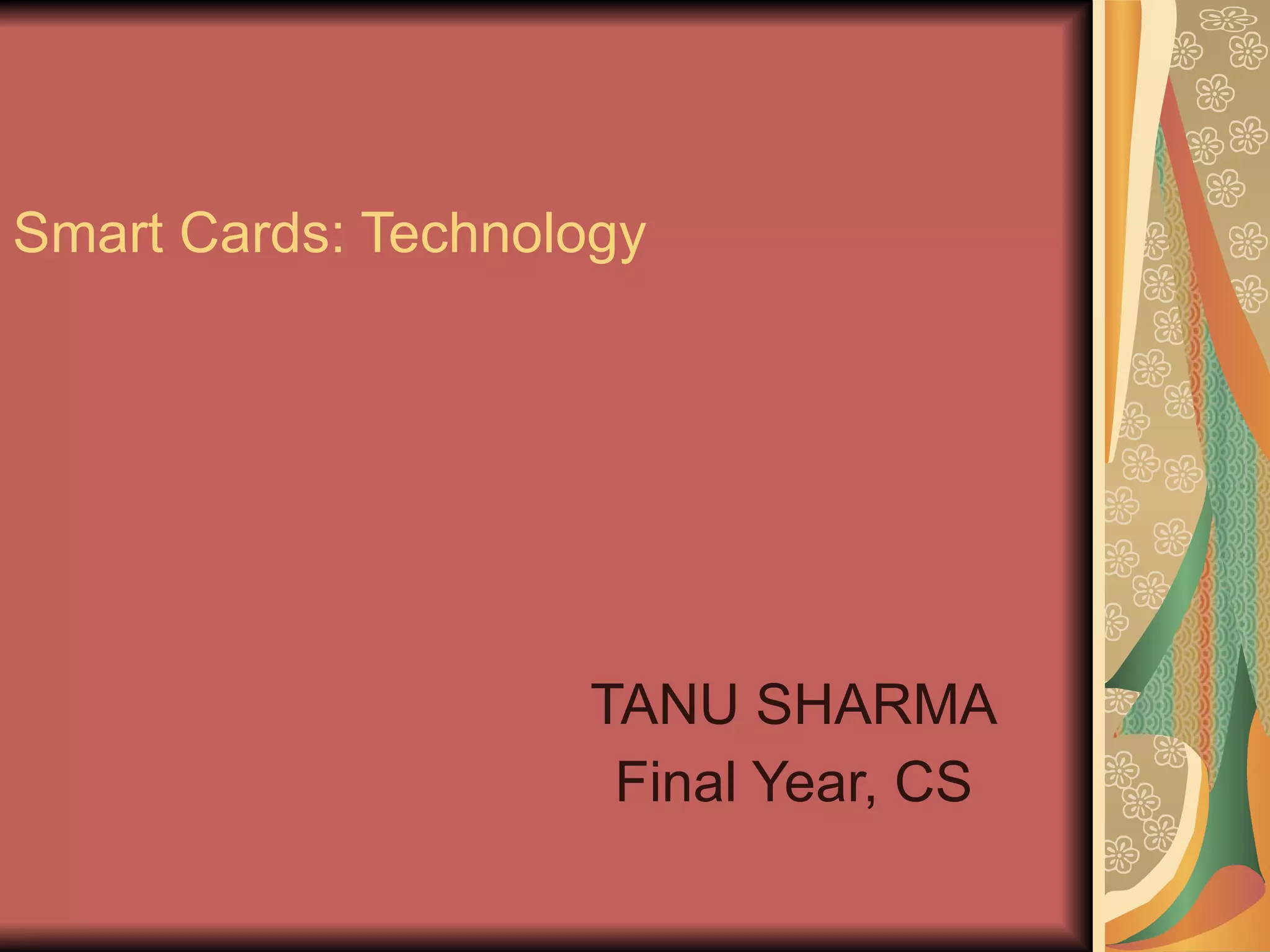 The document discusses smart cards, which are portable devices containing non-volatile memory and a microprocessor that provide improved security for transactions. Smart cards come in two types - memory-only chips and microprocessor chips. They allow for tamper-proof storage of user identity and provide security mechanisms like passwords, cryptographic challenges, and biometric authentication. Communication between smart cards and readers is standardized using the ISO 7816 protocol. Current applications of smart cards include payments, mobile communications, banking, electronic purses, healthcare, and ID verification.