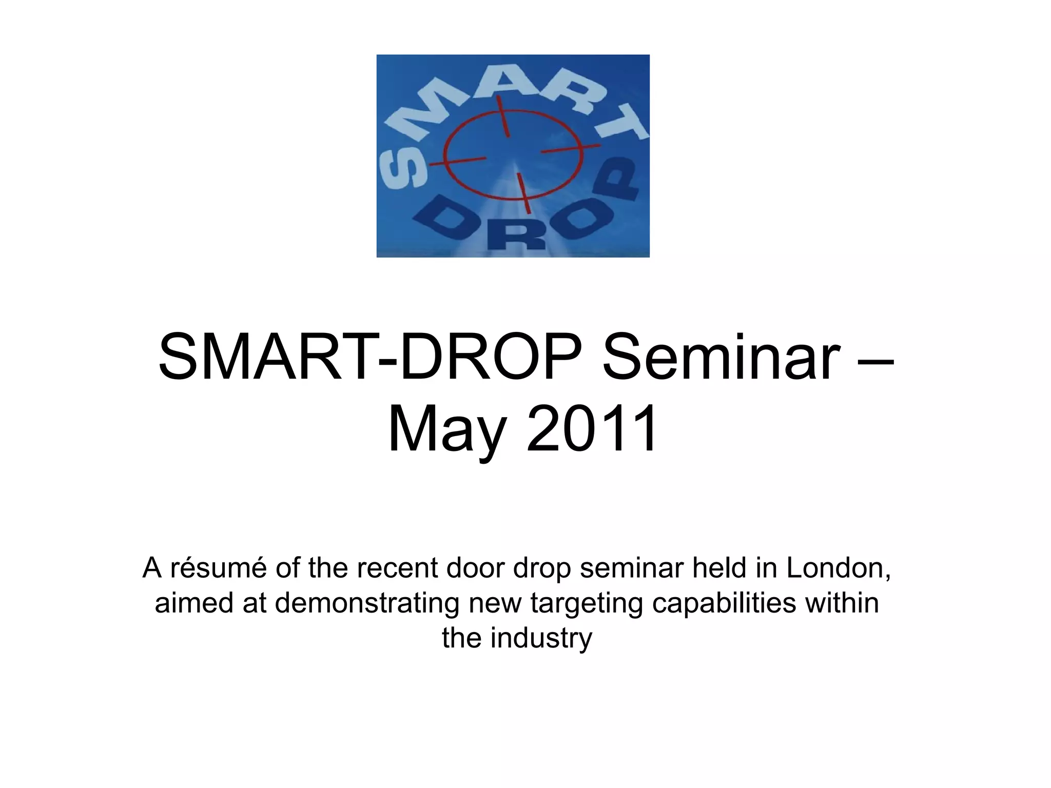 The smart-drop seminar held in May 2011 in London presented new targeting capabilities in door drop marketing to demonstrate its effectiveness in consumer behavior change. Key tips for successful door drop marketing were shared, emphasizing the importance of targeting, message clarity, and creative execution, while also highlighting the potential return on investment. The seminar showcased a method of targeting that optimizes delivery to specific households, enhancing campaign effectiveness.