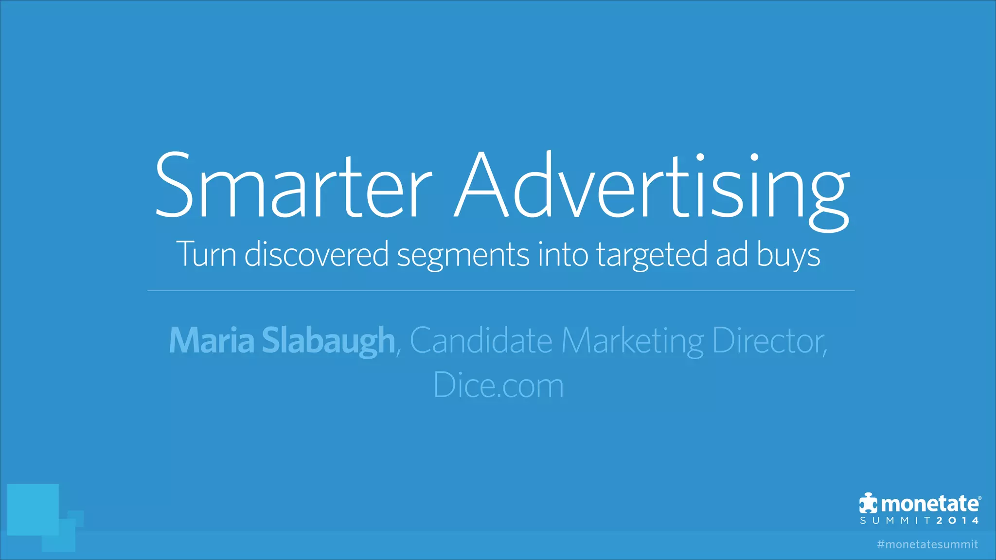 Maria Slabaugh of Dice.com discussed how her company used look-alike targeting through display advertising to improve their marketing results. They found that only 48% of view-through conversions from retargeting were incremental. Using look-alike targeting, which matches customer characteristics to find new targets, 92% of view-through conversions were incremental and conversion costs plummeted from $28 to $0.31 per conversion. Maria concluded that display media is evolving and data and analytics can be used to power successful look-alike programs with improved results.